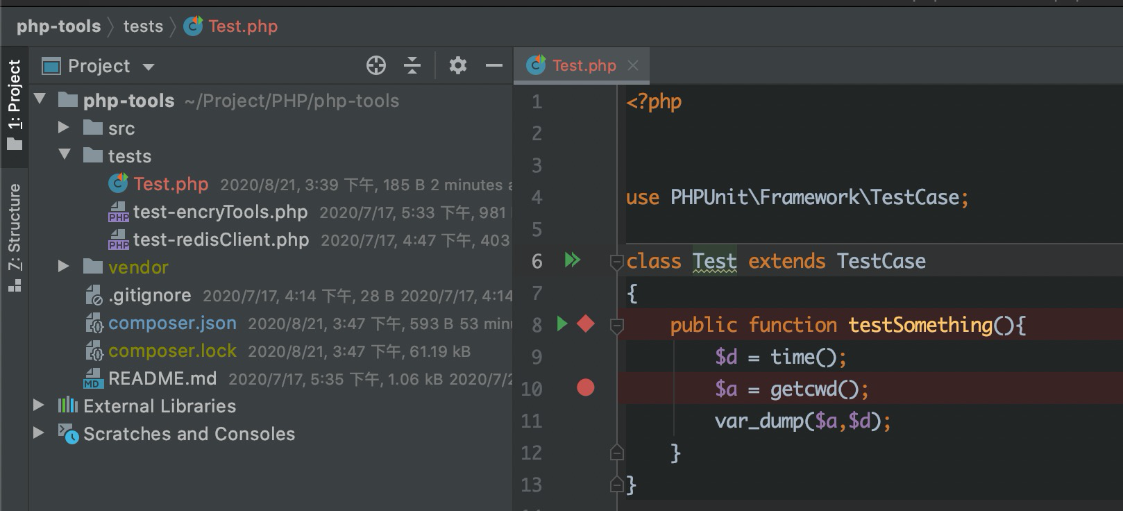 4. 运行单元测试 4.1 创建单元测试文件Test.php 创建单元测试文件Test.php,目录结构如下: